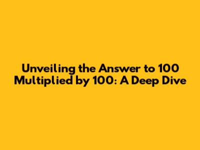 Hey guys! Ever found yourself scratching your head over a seemingly simple math problem? We've all been there! Today, let's tackle a question that might pop into your head or even one you might ask Google: What's 100 multiplied by 100? It seems straightforward, right? But let's not just jump to the answer. Let's explore why this question is interesting, how we can easily solve it, and even touch on some real-world scenarios where this kind of calculation comes in handy. So, buckle up, and let's dive into the world of hundreds and multiplication! At its core, multiplying 100 by 100 is a fundamental arithmetic operation. It's a basic concept, but it's also a building block for more complex calculations. Understanding this simple multiplication can pave the way for grasping larger numbers and mathematical concepts. We often encounter numbers in the hundreds in our daily lives, from budgeting expenses to understanding statistics. Therefore, having a good grasp of how hundreds work in math is super beneficial. Think about it: understanding that 100 multiplied by 100 equals 10,000 helps you quickly estimate costs, calculate areas, and even understand the scale of data in charts and graphs. So, whether you're a student learning the basics or someone who just wants a quick refresher, understanding this multiplication is a valuable skill. Now, let's get into the nitty-gritty of how we solve this. We'll break it down into simple steps so anyone can follow along. We'll also touch on some mental math tricks that can help you solve this and similar problems in a snap. So, stick around, and let's conquer this math question together! Let's get started and make math a little less intimidating and a lot more fun.