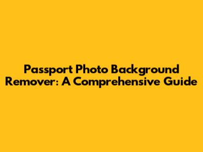 Passport Photo Background Remover: A Comprehensive Guide