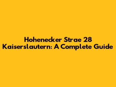 Hohenecker Strae 28 Kaiserslautern: A Complete Guide