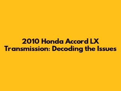 Hey car enthusiasts! Today, we're diving deep into the 2010 Honda Accord LX transmission, a component crucial for the smooth operation of your beloved vehicle. Specifically, we're going to address the common issues you might face with this transmission and explore potential solutions. Understanding your car's mechanics doesn't have to be a headache. Think of it like a puzzle; once you grasp the pieces, you can easily troubleshoot and keep your Accord running like a champ. Whether you're a seasoned mechanic or a curious car owner, this guide will provide valuable insights into the 2010 Honda Accord LX transmission. The 2010 Honda Accord LX is a popular car known for its reliability and fuel efficiency. However, like any vehicle, it can experience transmission problems over time. These issues can range from minor inconveniences to major breakdowns, so early detection and proper maintenance are key to longevity. The purpose of this guide is to equip you with the knowledge needed to identify, diagnose, and address these transmission-related issues, helping you make informed decisions about your car's care. Let's get started.