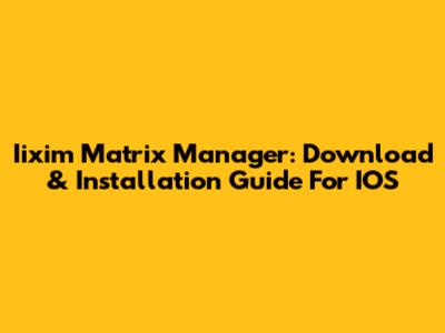 Iixim Matrix Manager: Download & Installation Guide For IOS