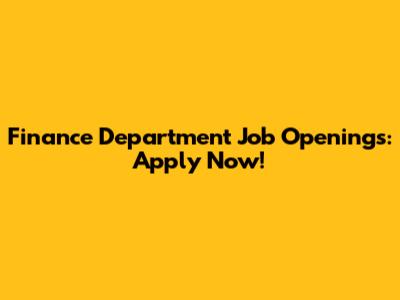 Finance Department Job Openings: Apply Now!