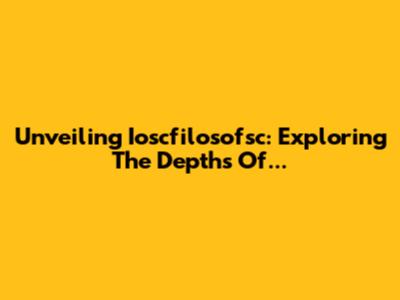 Unveiling Ioscfilosofsc: Exploring The Depths Of...