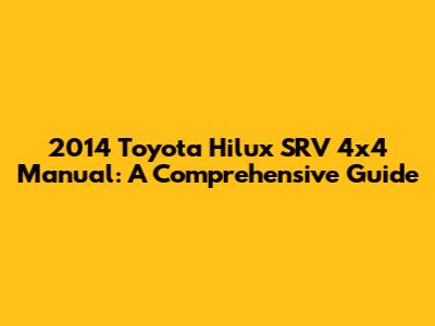 2014 Toyota Hilux SRV 4x4 Manual: A Comprehensive Guide