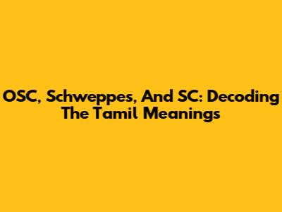 OSC, Schweppes, And SC: Decoding The Tamil Meanings