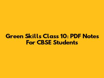 Green Skills Class 10: PDF Notes For CBSE Students