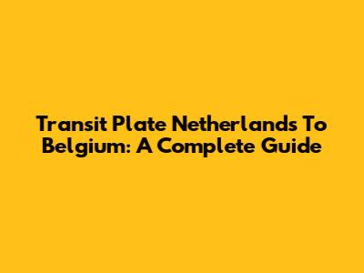 Transit Plate Netherlands To Belgium: A Complete Guide