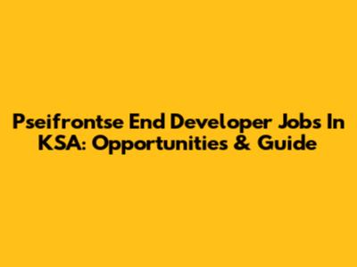 Pseifrontse End Developer Jobs In KSA: Opportunities & Guide