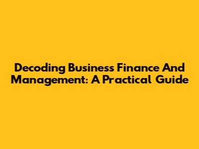 Decoding Business Finance And Management: A Practical Guide