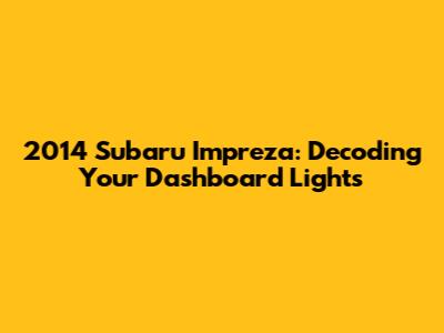 2014 Subaru Impreza: Decoding Your Dashboard Lights