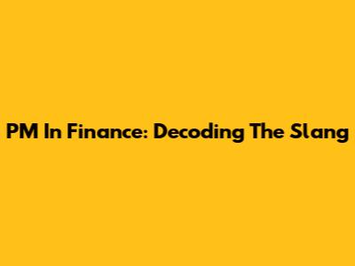 PM In Finance: Decoding The Slang