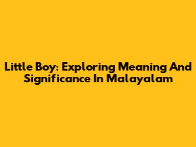 Little Boy: Exploring Meaning And Significance In Malayalam