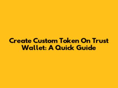 Create Custom Token On Trust Wallet: A Quick Guide
