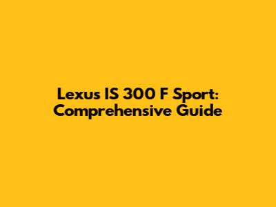 Lexus IS 300 F Sport: Comprehensive Guide