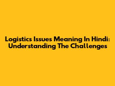 Logistics Issues Meaning In Hindi: Understanding The Challenges