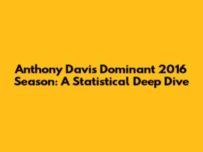 Anthony Davis' Dominant 2016 Season: A Statistical Deep Dive