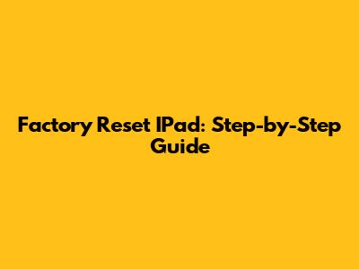 Factory Reset IPad: Step-by-Step Guide