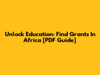 Unlock Education: Find Grants In Africa [PDF Guide]