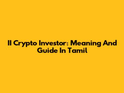 II Crypto Investor: Meaning And Guide In Tamil