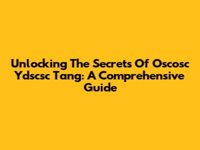 Unlocking The Secrets Of Oscosc Ydscsc Tang: A Comprehensive Guide