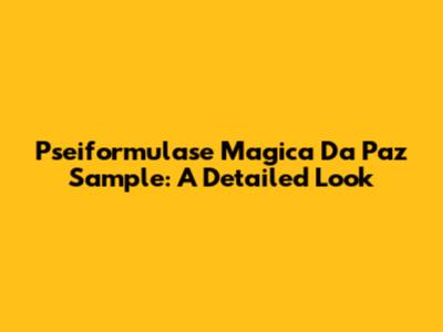 Pseiformulase Magica Da Paz Sample: A Detailed Look
