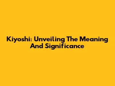 Kiyoshi: Unveiling The Meaning And Significance