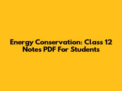 Energy Conservation: Class 12 Notes PDF For Students