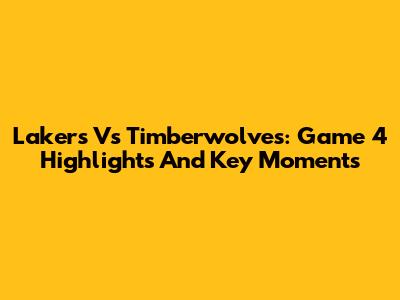 Lakers Vs Timberwolves: Game 4 Highlights And Key Moments