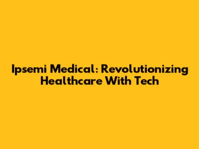 Ipsemi Medical: Revolutionizing Healthcare With Tech