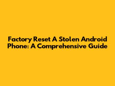 Factory Reset A Stolen Android Phone: A Comprehensive Guide