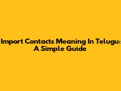 Import Contacts Meaning In Telugu: A Simple Guide
