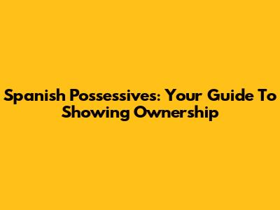 Spanish Possessives: Your Guide To Showing Ownership