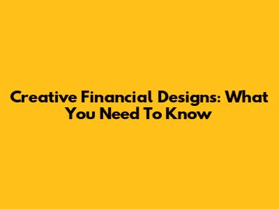 Creative Financial Designs: What You Need To Know