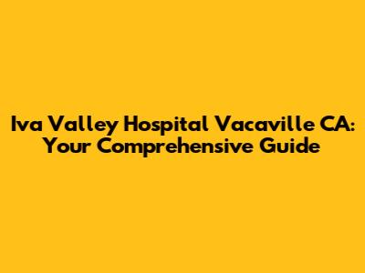 Iva Valley Hospital Vacaville CA: Your Comprehensive Guide