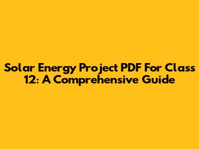 Solar Energy Project PDF For Class 12: A Comprehensive Guide