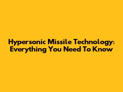 Hypersonic Missile Technology: Everything You Need To Know