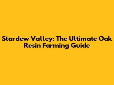 Stardew Valley: The Ultimate Oak Resin Farming Guide