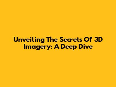 Unveiling The Secrets Of 3D Imagery: A Deep Dive