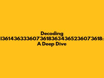Decoding I36143633360736183634365236073618: A Deep Dive