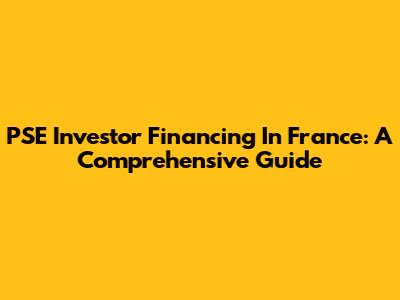 PSE Investor Financing In France: A Comprehensive Guide