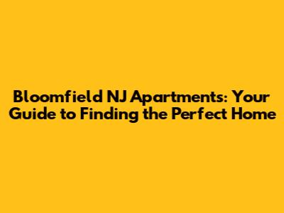 - What are the best ways to find apartments in Bloomfield, NJ? The most popular ways to find apartments are through online search portals like Apartments.com, Zillow, and Trulia. Local real estate agents also specialize in rentals and have access to unique listings. Also, keep an eye out for "For Rent" signs while exploring neighborhoods.