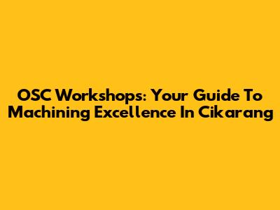 OSC Workshops: Your Guide To Machining Excellence In Cikarang