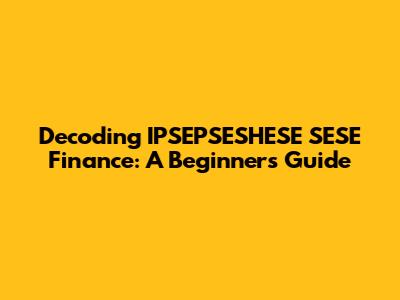Decoding IPSEPSESHESE SESE Finance: A Beginner's Guide