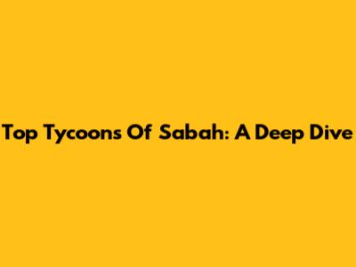 Top Tycoons Of Sabah: A Deep Dive