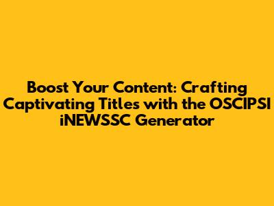 See? Titles are a big deal. They are not just an afterthought; they are a critical component of successful content creation. And with the help of the OSCIPSI iNEWSSC title generator, you can master this vital skill.