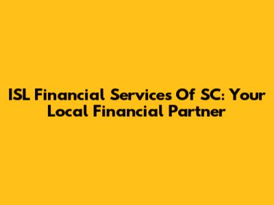 ISL Financial Services Of SC: Your Local Financial Partner