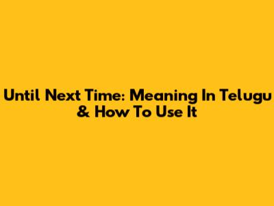 Until Next Time: Meaning In Telugu & How To Use It