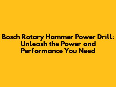 Choosing the Right Bosch Rotary Hammer Drill for Your Needs