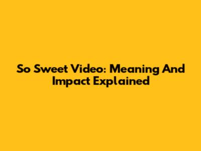 So Sweet Video: Meaning And Impact Explained