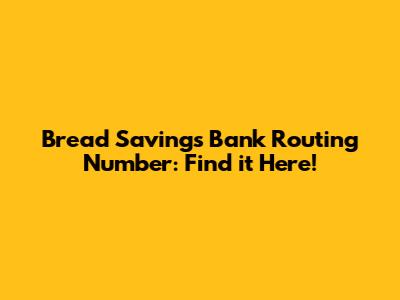 - Step-by-step: Log into your Bread Savings Bank account, go to account details, and look for the routing number.